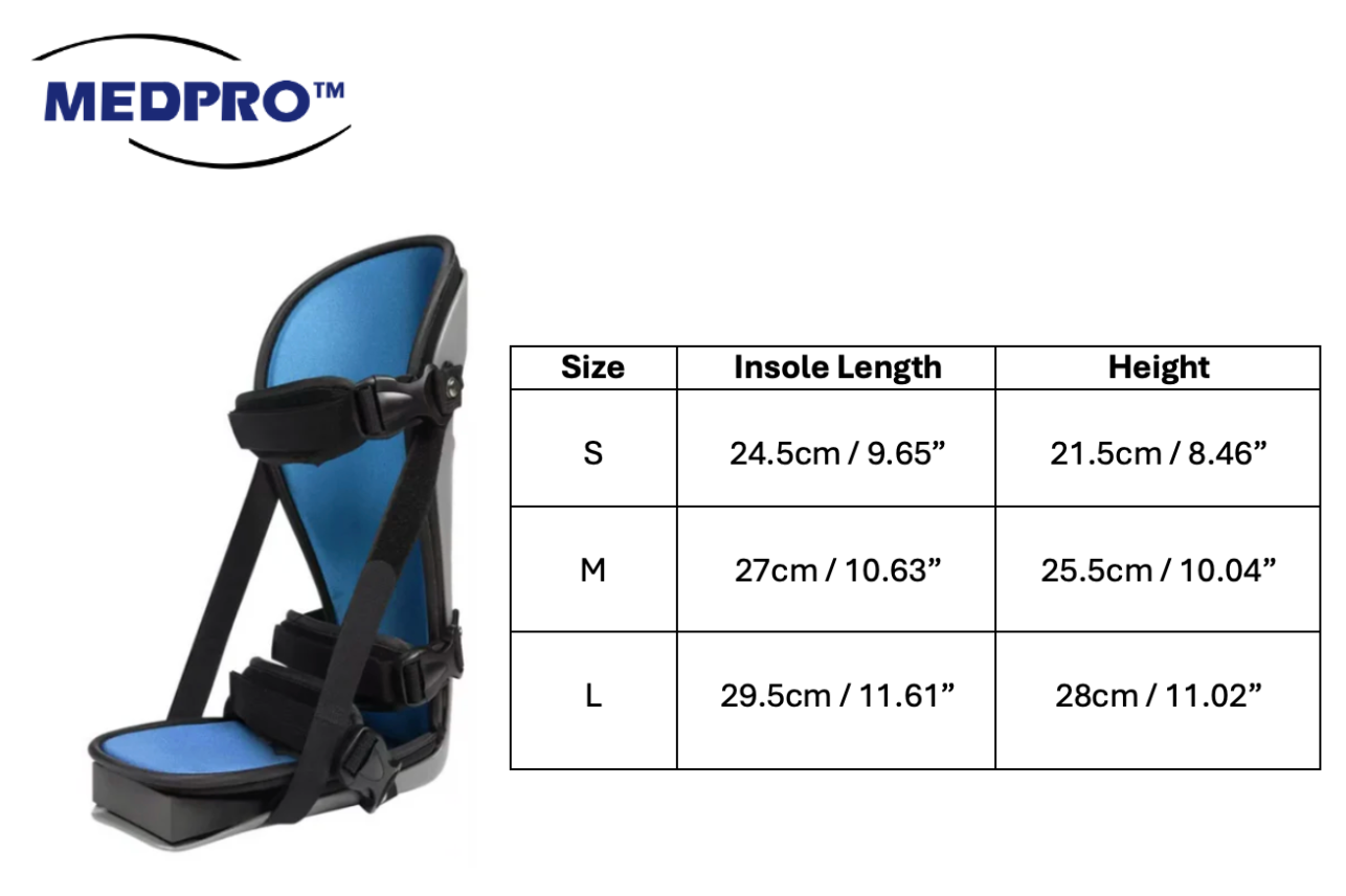 - Adjustable from 90 to 10 dorsiflexion.